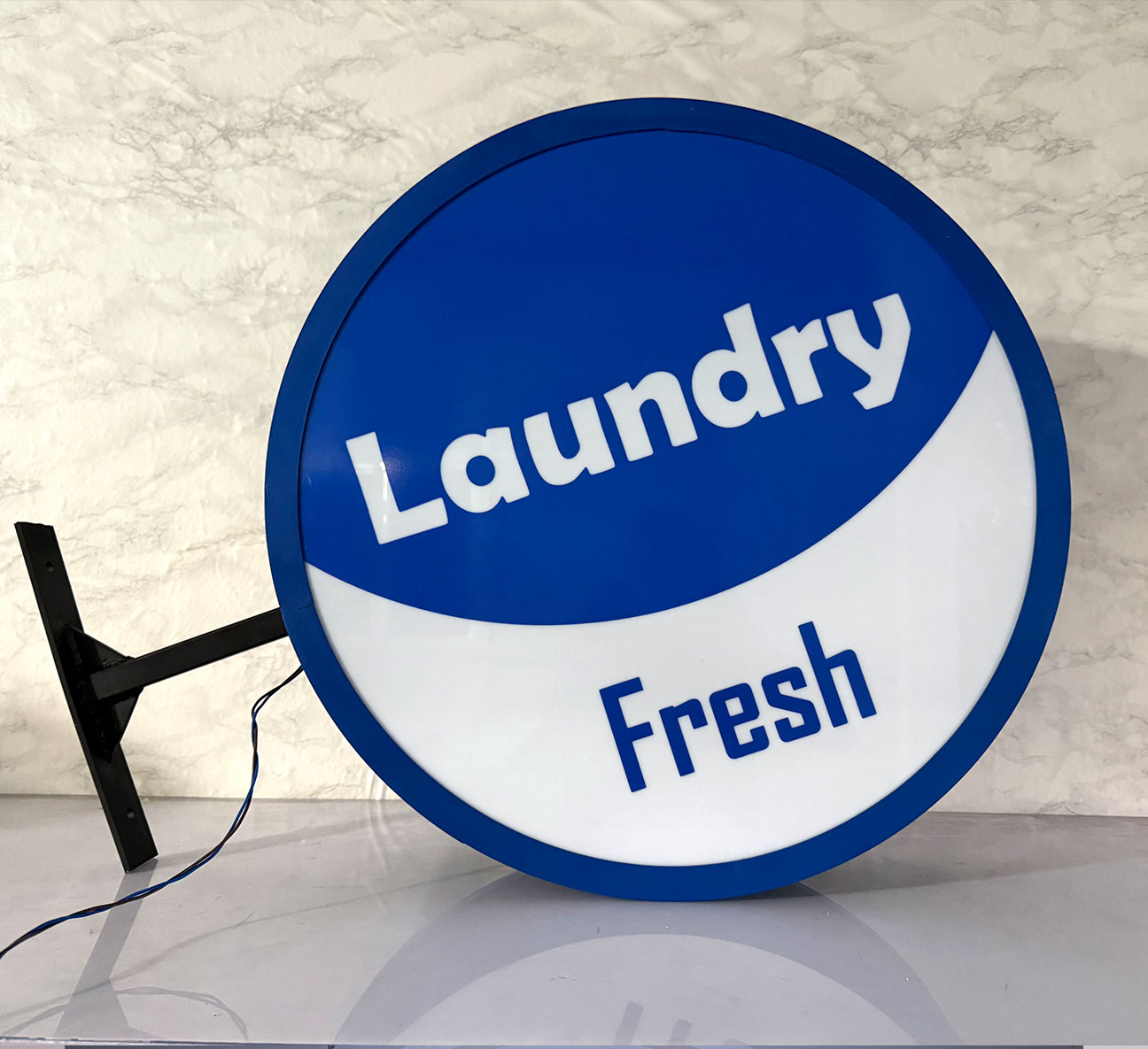 This is a name board made with 3ft x 3ft box bars, shaped round. The name board is created by either
