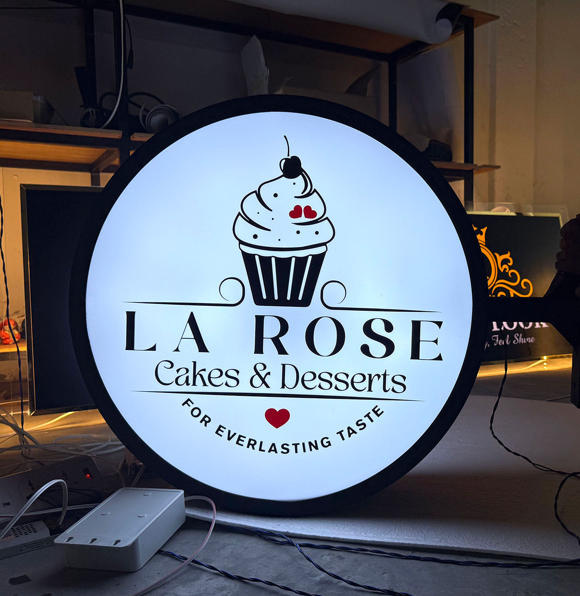 This is a name board made with 3ft x 3ft box bars, shaped round. The name board is created by either